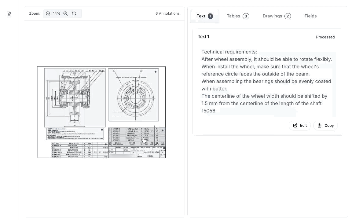 Our multi-stage AI pipeline handles the complexity of engineering documents, so you don't have to.